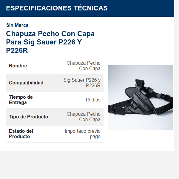 Chapuza Pecho Con Capa Para Sig Sauer P226 Y P226R. Este Producto Tarda En Llegar 15 Dias Despues De Su Pago. Preguntar Por Disponibilidad Antes De Realizar El Pago. Producto Importado Previo Pago.