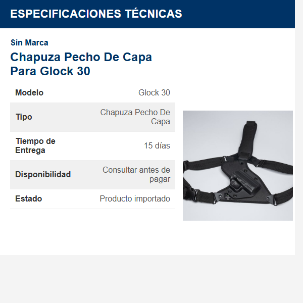 Chapuza Pecho De Capa Para Glock 30. Este Producto Tarda En Llegar 15 Dias Despues De Su Pago. Preguntar Por Disponibilidad Antes De Realizar El Pago. Producto Importado Previo Pago.