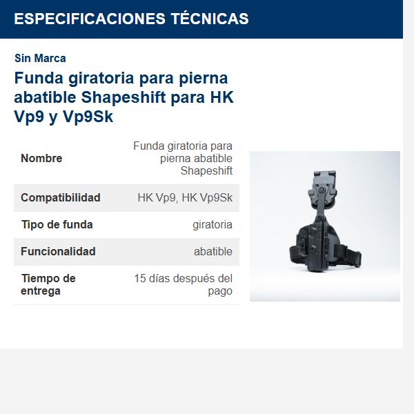 ¿Te has encontrado alguna vez en la situación de no saber cómo llevar tu HK Vp9 o Vp9Sk de manera segura y cómoda? La solución está aquí: la Funda Giratoria para Pierna Abatible Shapeshift. Este innovador accesorio te permitirá llevar tu arma de forma accesible y discreta, sin comprometer tu comodidad.