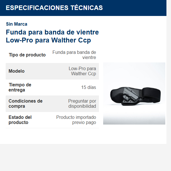 Funda para banda de vientre Low-Pro para Walther Ccp. Este Producto Tarda En Llegar 15 Dias Despues De Su Pago. Preguntar Por Disponibilidad Antes De Realizar El Pago. Producto Importado Previo Pago.