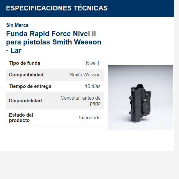 ¿Te preocupa la seguridad y el acceso rápido a tu pistola Smith & Wesson Lar en situaciones críticas? La falta de una funda adecuada puede poner en riesgo tu integridad y la de quienes te rodean. La solución está aquí: la Funda Rapid Force Nivel II, diseñada específicamente para ofrecer una combinación perfecta de seguridad y accesibilidad.
