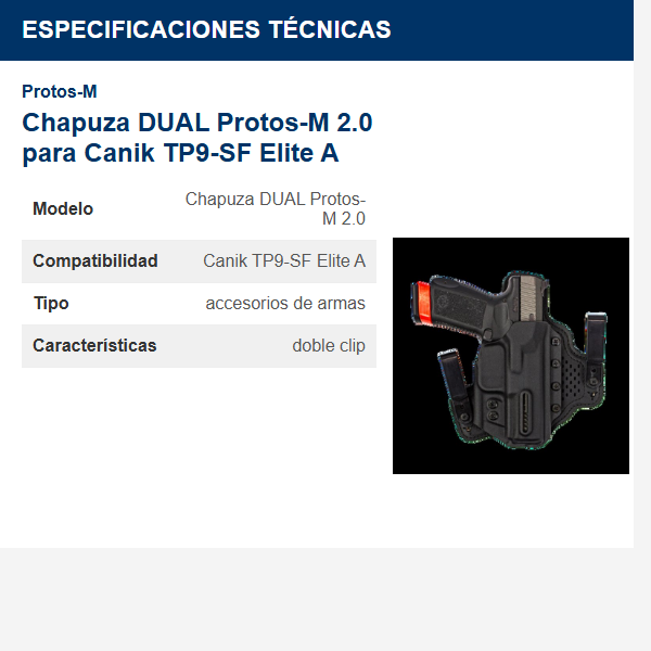 Chapuza DUAL Protos-M 2.0 para Canik TP9-SF Elite A. Este Producto Tarda En Llegar 15 Dias Despues De Su Pago. Preguntar Por Disponibilidad Antes De Realizar El Pago. Producto Importado Previo Pago.