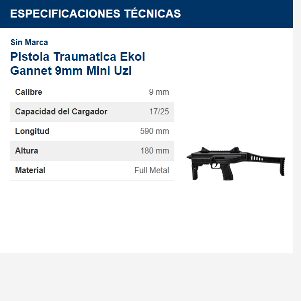 Análisis Técnico de la Pistola Traumática Ekol Gannet 9mm Mini Uzi