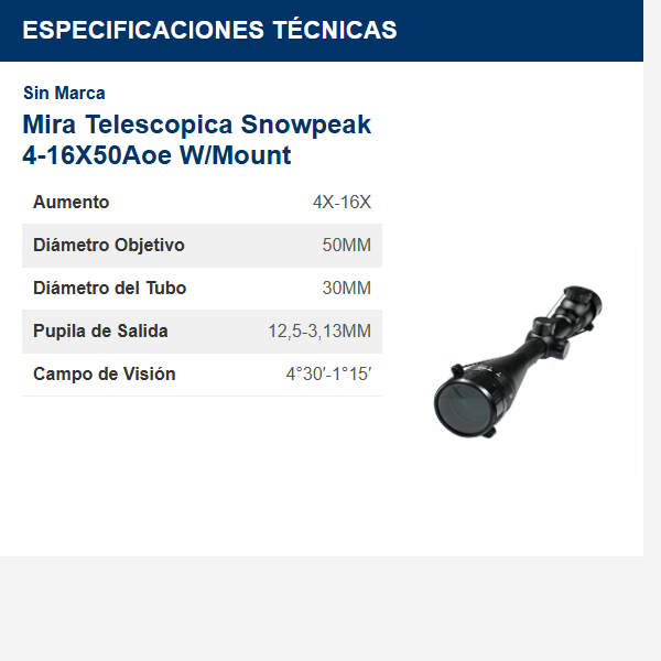 Análisis Técnico de la Mira Telescópica Snowpeak 4-16x50AOE W Mount