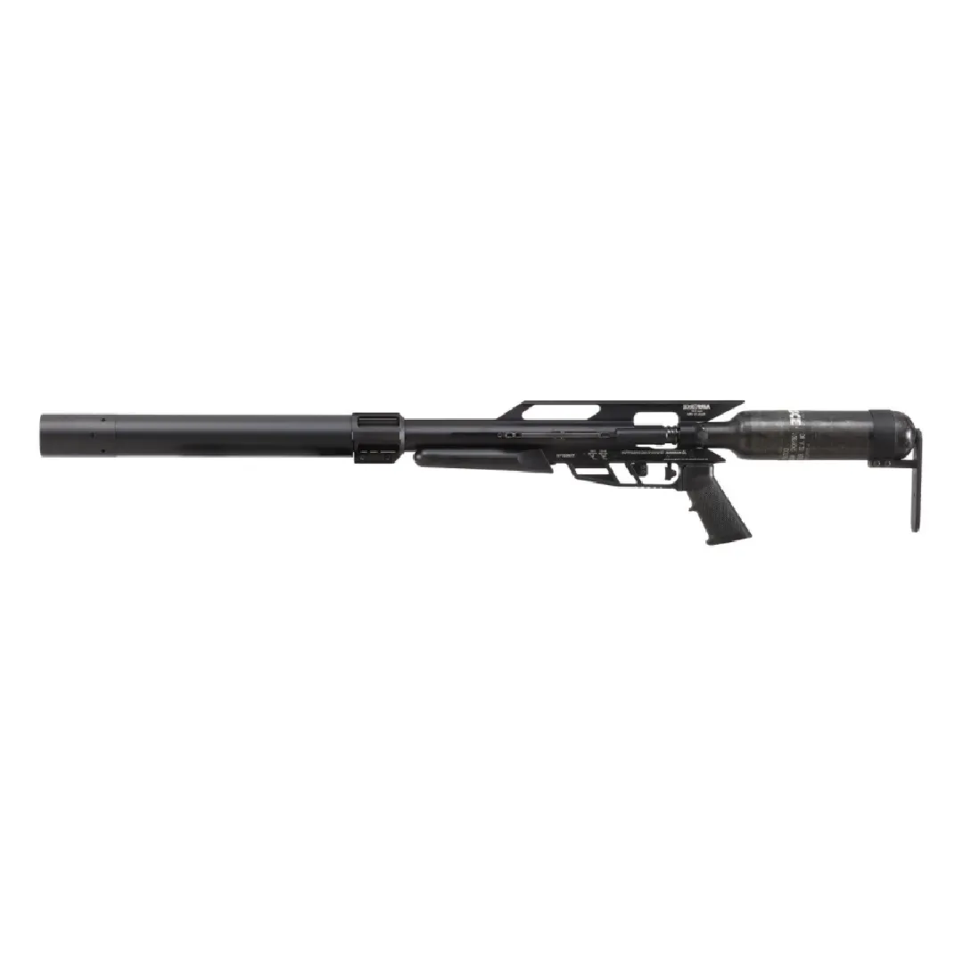 • Tanque de fibra de carbono: Reduce el peso total del rifle sin sacrificar la capacidad.