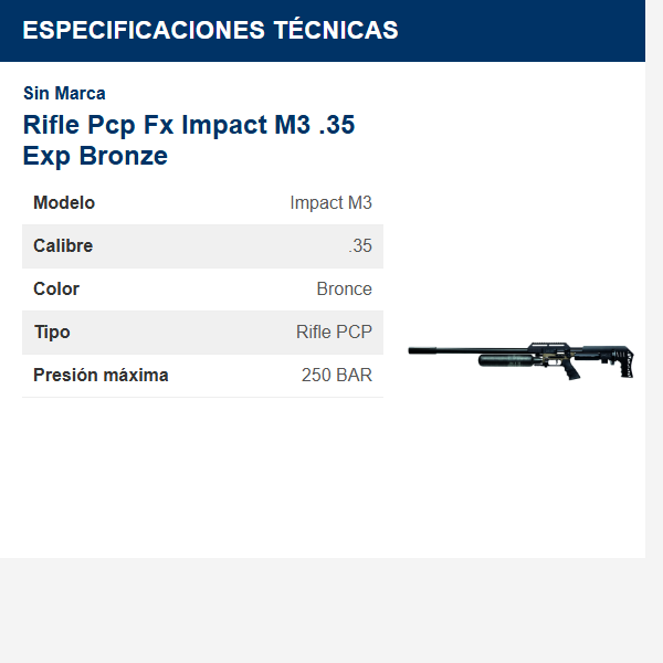Sé el primero en valorar “Rifle Pcp Fx Impact M3 .35 Exp Bronze”